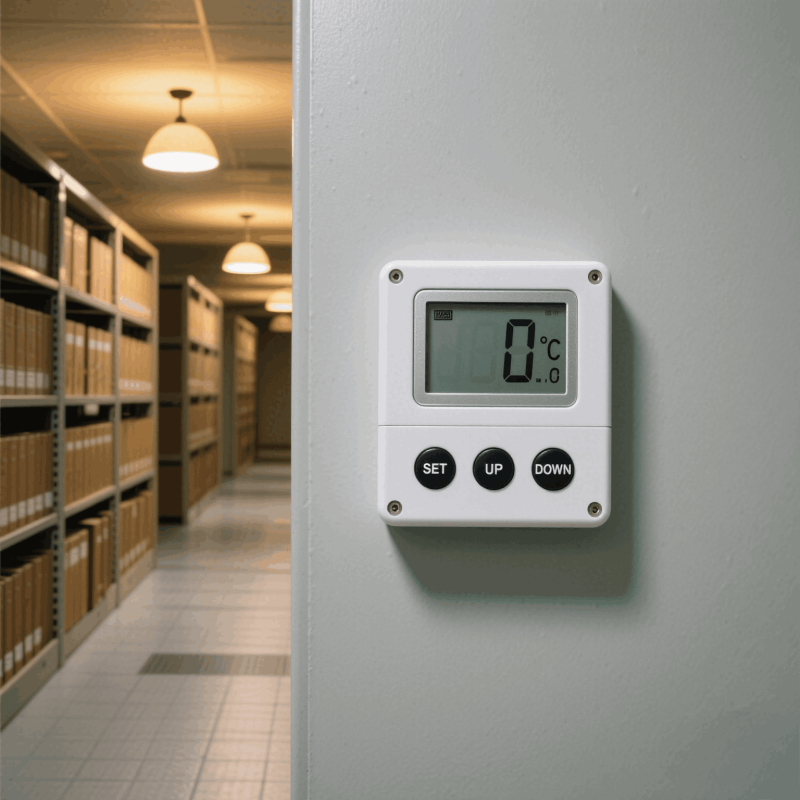采集库房内的温湿度数据,同时将数据上传至监控平台,并可以根据设定的温湿度要求打开或关闭空调、除湿机、加湿机等设备,实现对温湿度的管控。温湿度页面分为温湿度设备列表、库房区域平面图、报警值设定、库房平均温湿度曲线四部分。